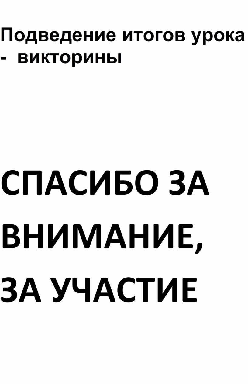 Подведение итогов урока - викторины