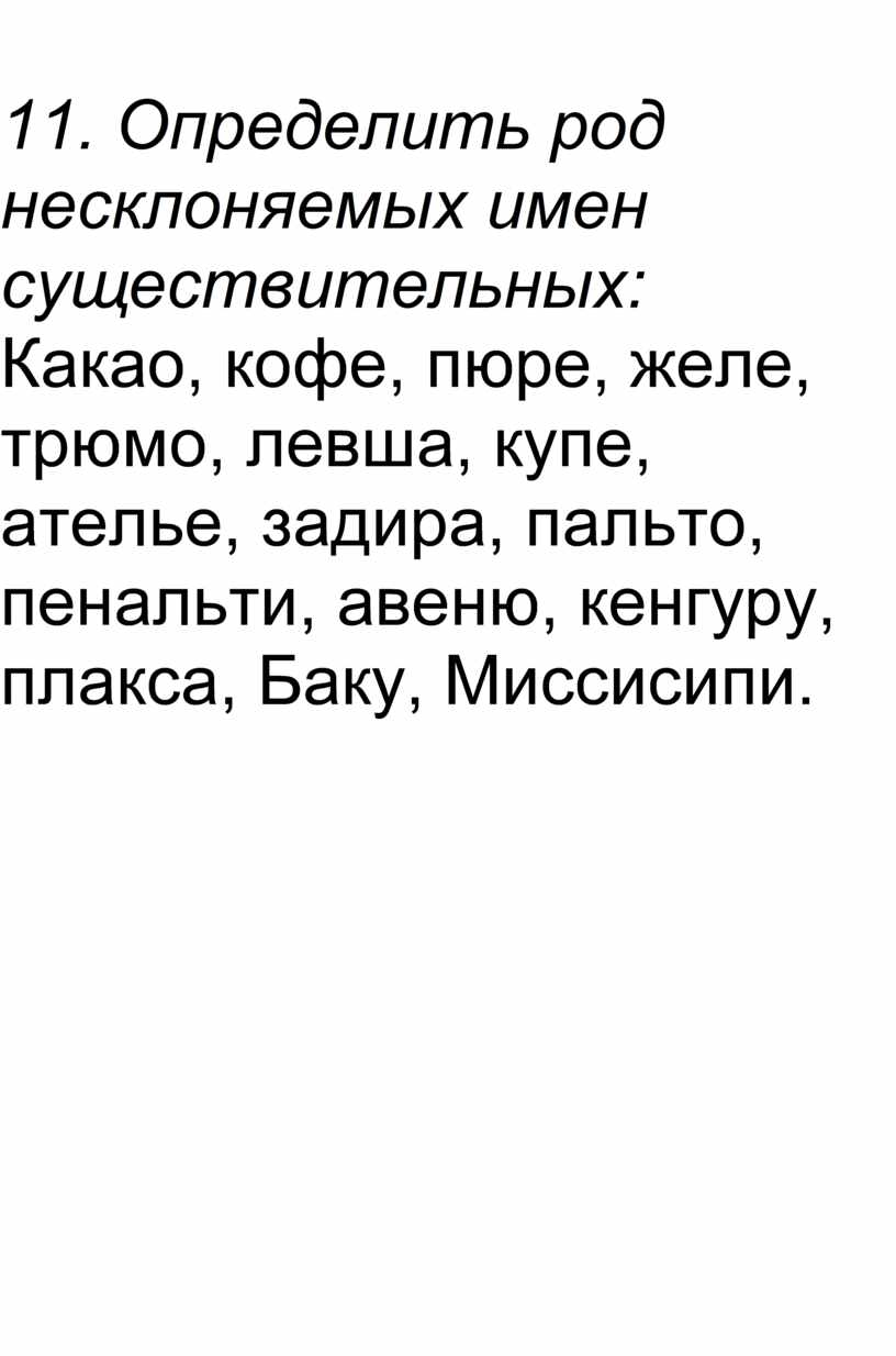 11. Определить род несклоняемых имен существительных: