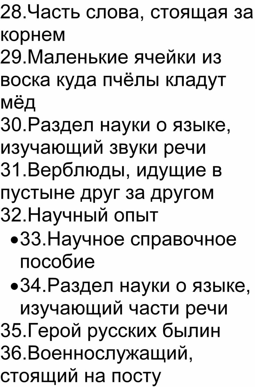 28.Часть слова, стоящая за корнем (суффикс)