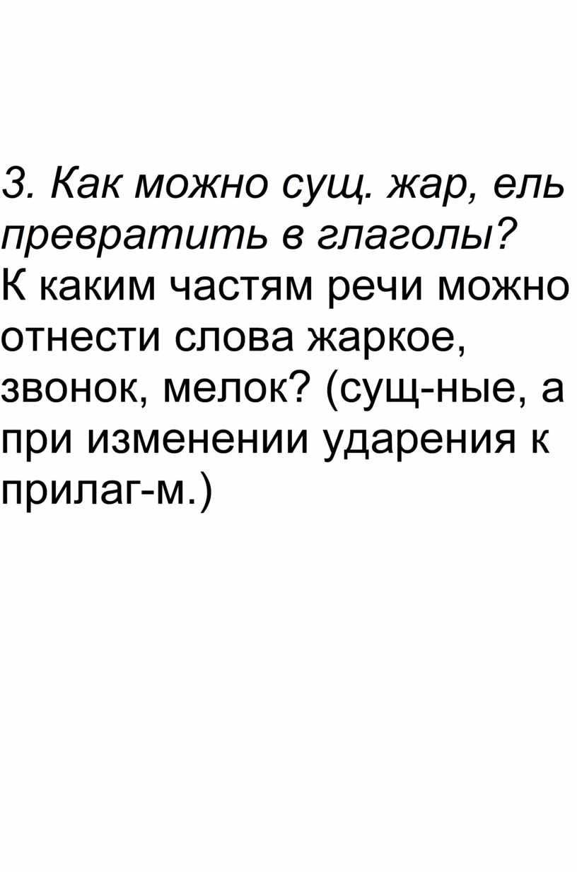 3. Как можно сущ. жар, ель превратить в глаголы?