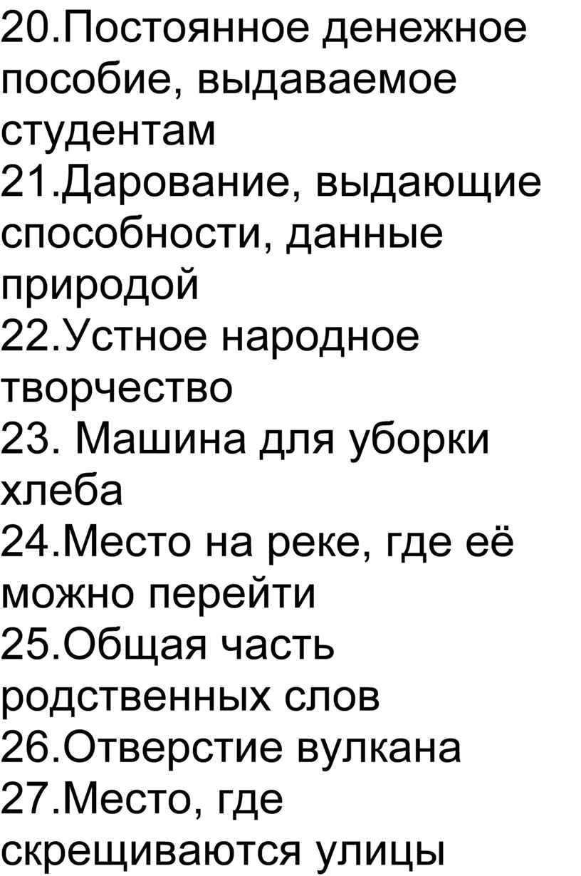 20.Постоянное денежное пособие, выдаваемое студентам (стипендия)