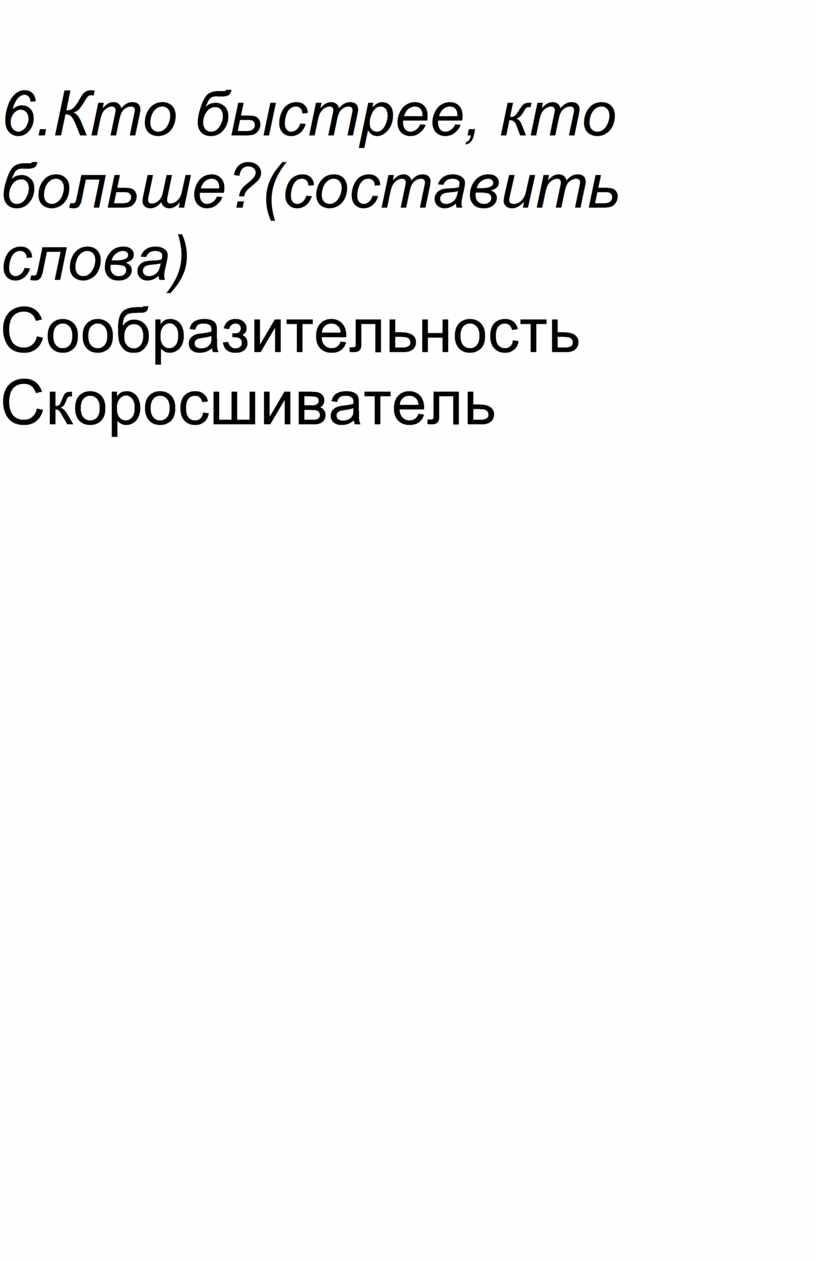6.Кто быстрее, кто больше?(составить слова)