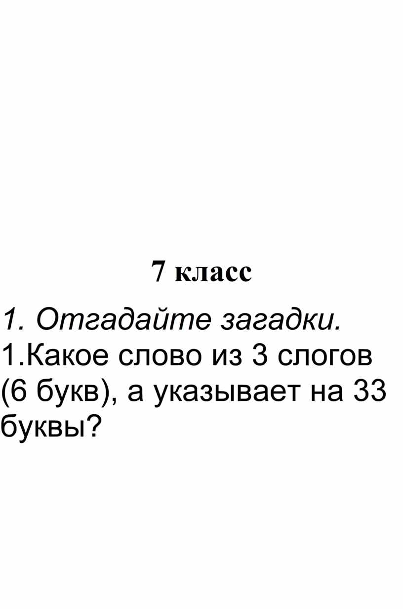 1.Какое слово из 3 слогов (6 букв), а указывает на 33 буквы?