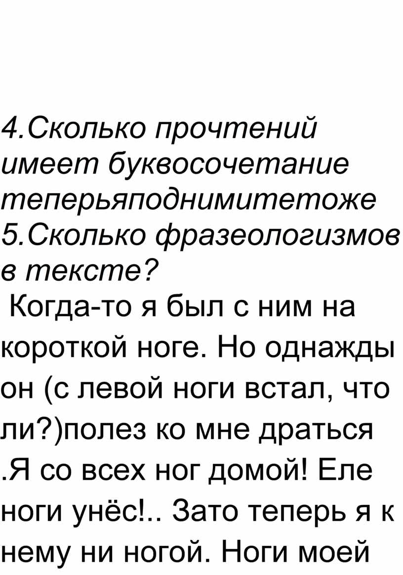 5.Сколько фразеологизмов в тексте?