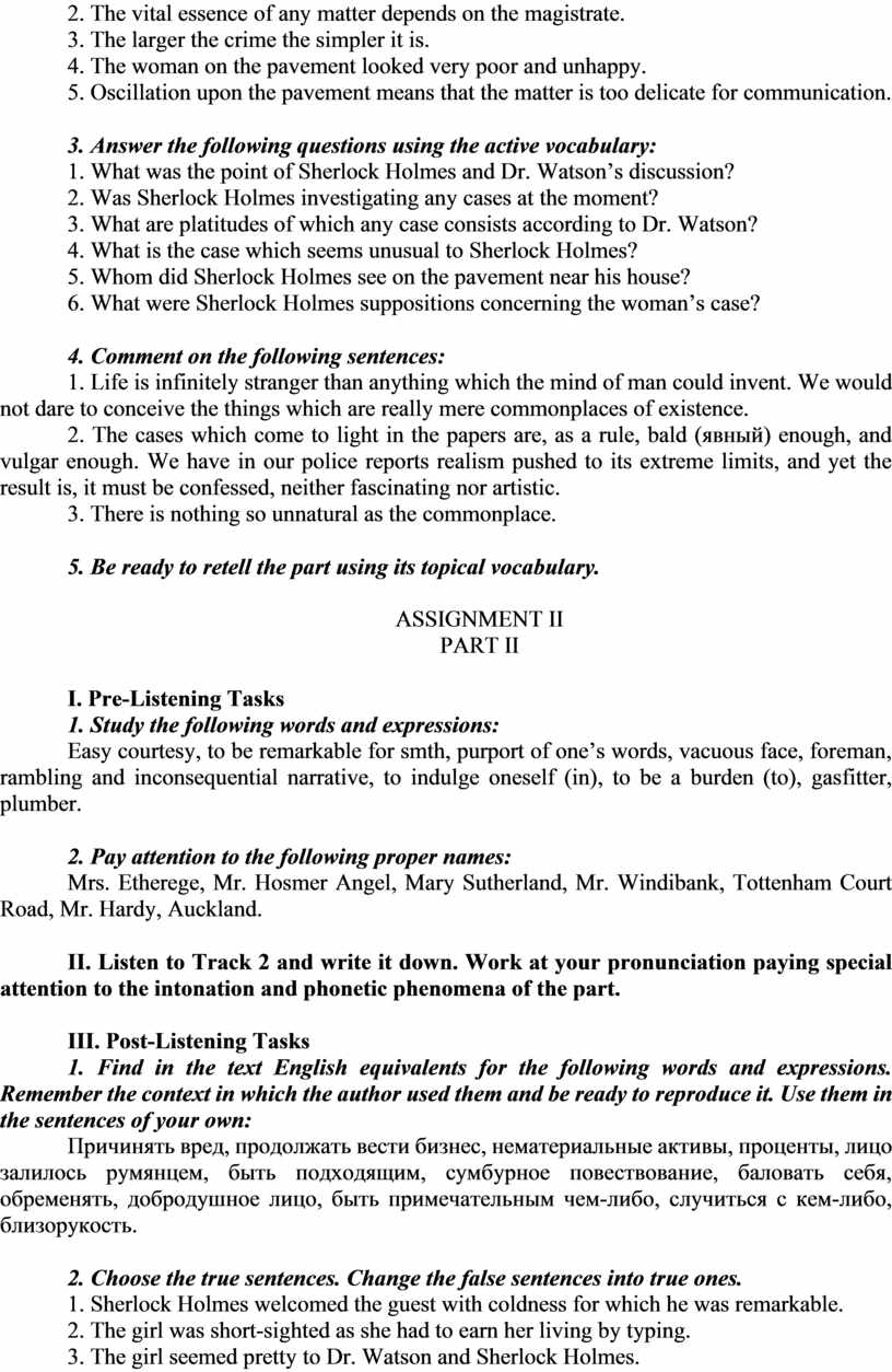 II. Listen to Track 2 and write it down. Work at your pronunciation paying special attention to the intonation and phonetic phenomena of the part.