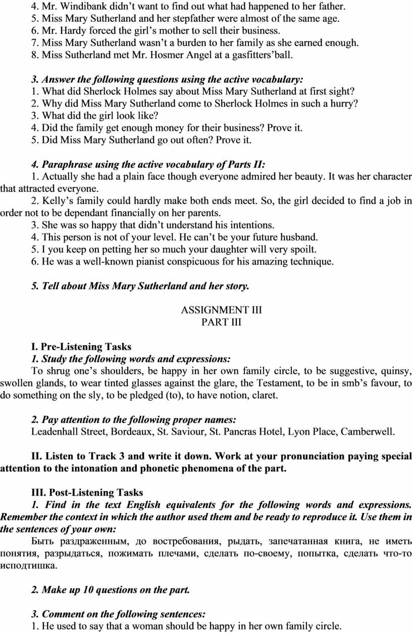 1. Sherlock Holmes’s method of deduction applied to Miss Mary Sutherland.