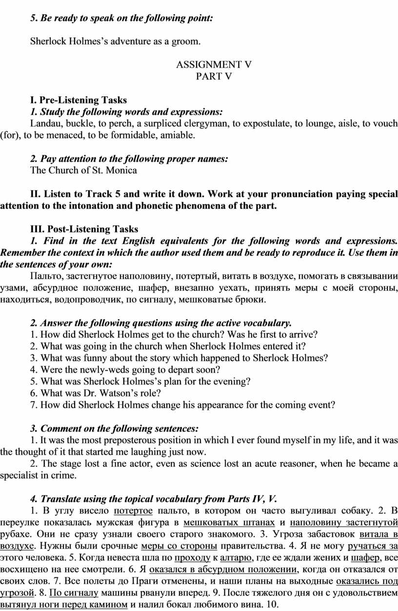8. Sherlock Holmes told his companion about the case he was about to take.