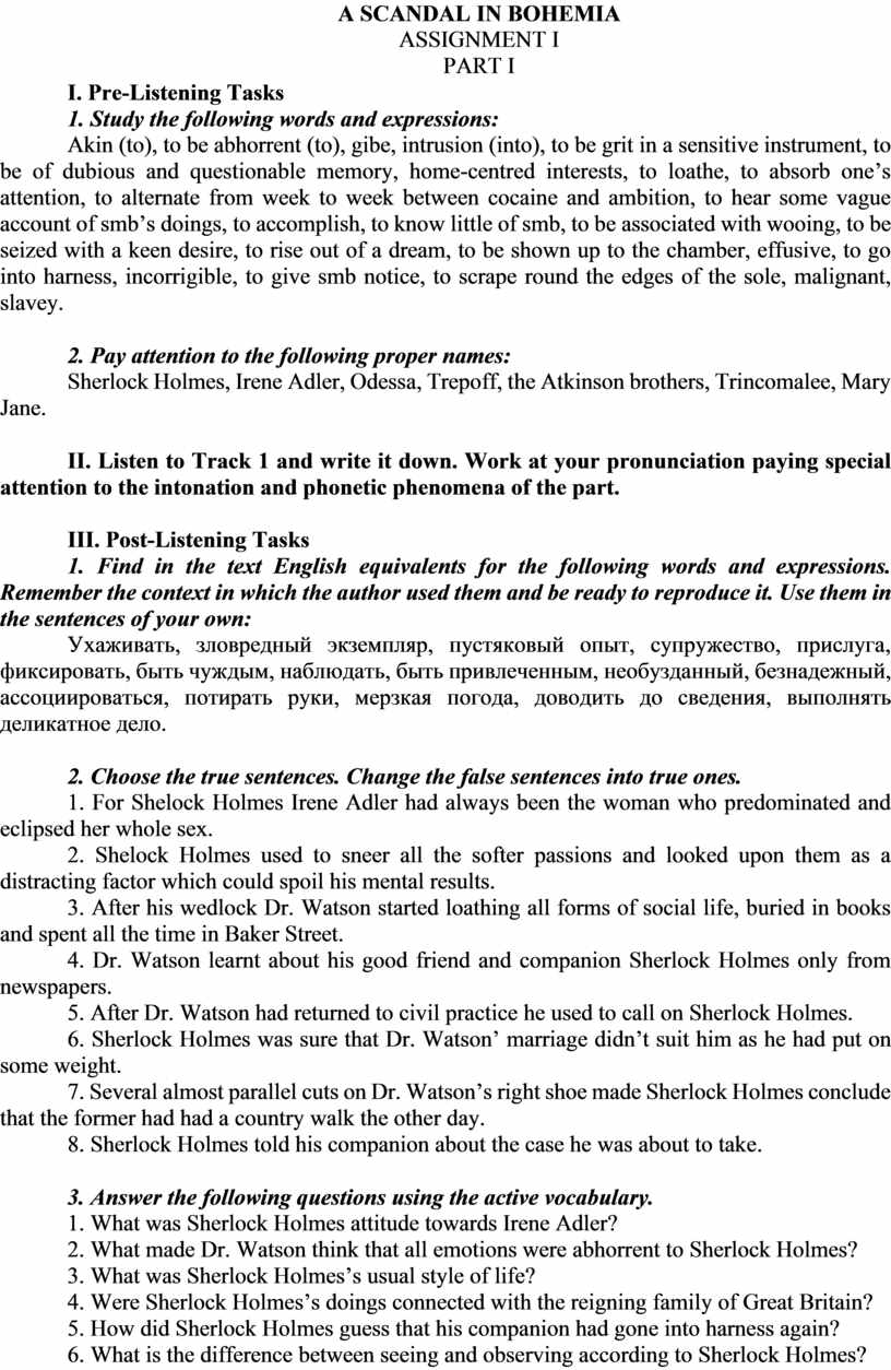 1. When Dr. Watson came in the morning he found Sherlock Holmes busy with chemical experiments.
