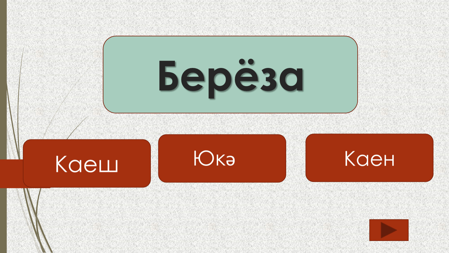 «Перевод слов с русского языка на татарский.»(Участник должен выбрать ответ, назвать его. Если ответ правильный - начисляется 2 балла, если неправильный, то право ответа переходит другому участнику дается шесть понятий, которые отгадываются по очереди)