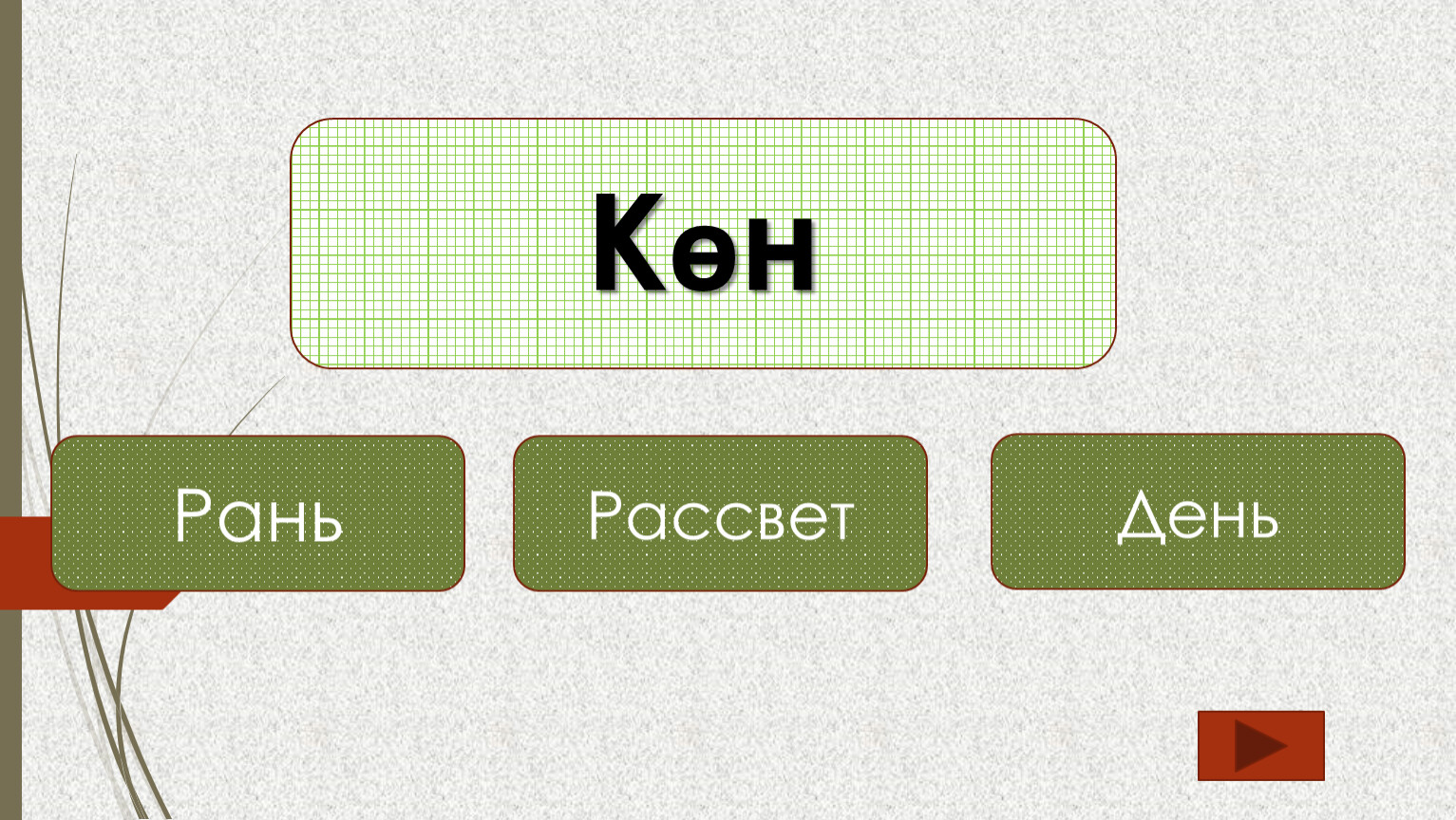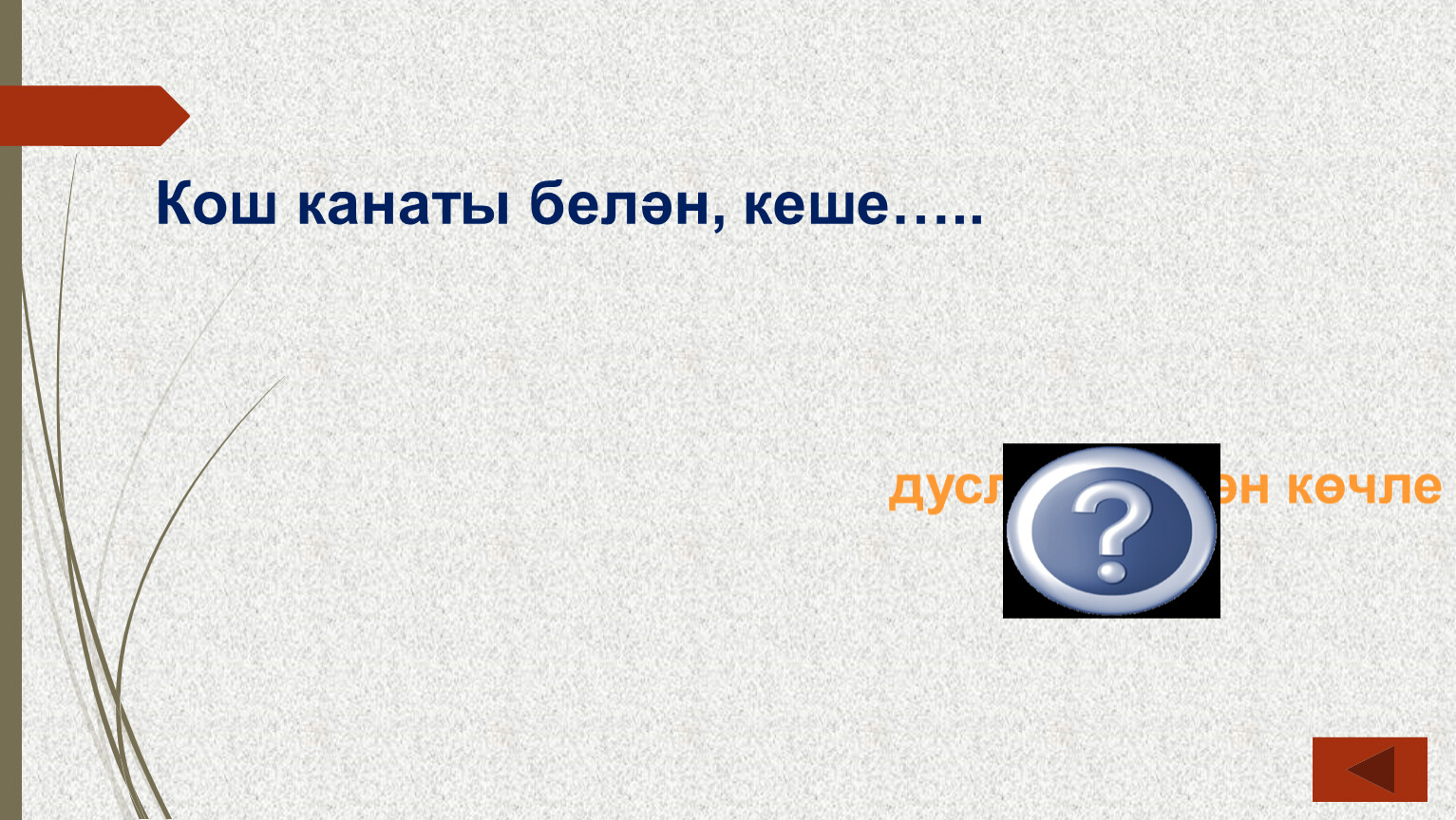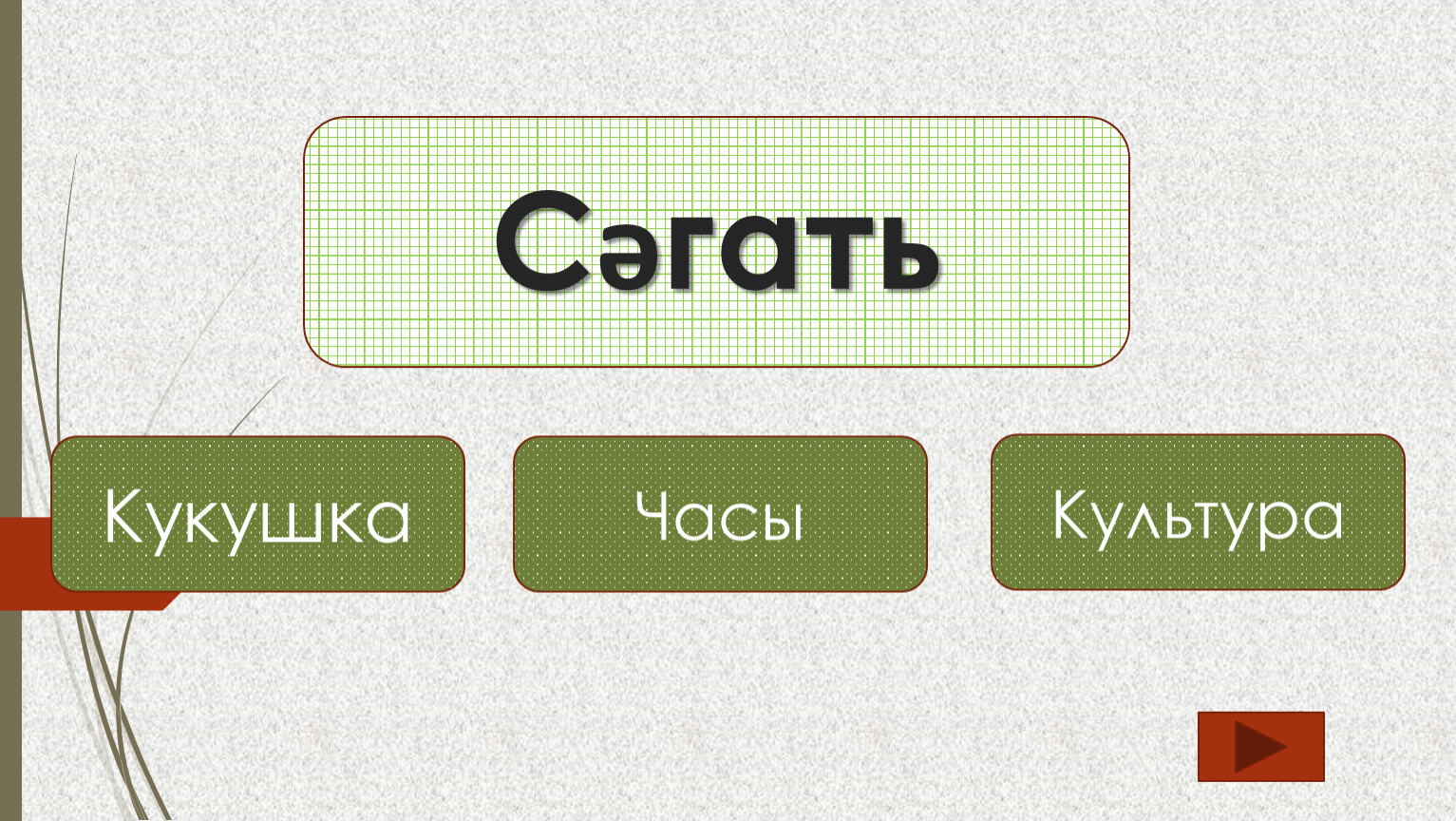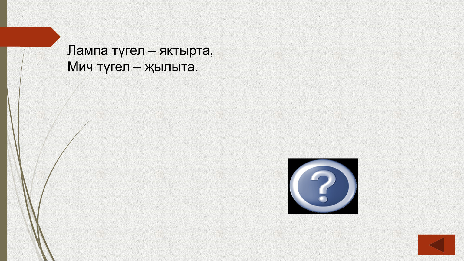 «Перевод слов с татарского языка на русский.»(Участник (команда) должен выбрать ответ, назвать его. Если ответ правильный - начисляется 2 балла, если неправильный, то право ответа переходит другому участнику (команде), дается шесть понятий, которые отгадываются по очереди)