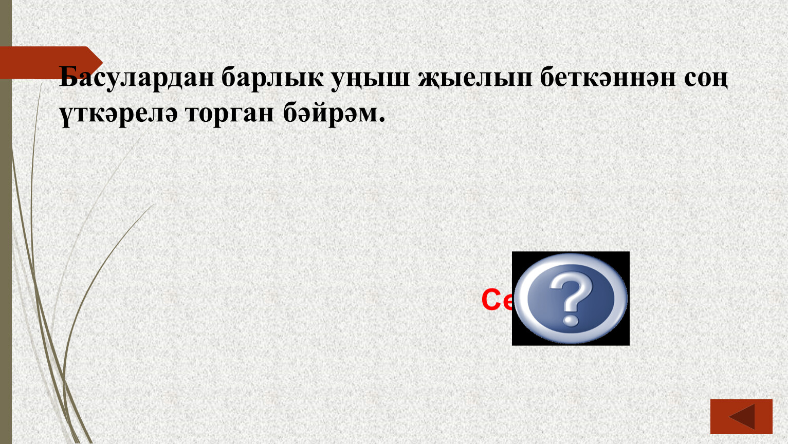 Татарларның традицион көнкүрешендә язгы кыр эшләре башланыр алдыннан үткәрелеп килгән иң зур һәм иң күңелле милли бәйрәм.