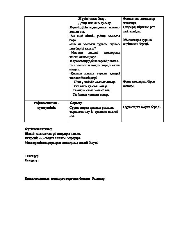Мақсаты: Балалардың сүйікті үй жануары туралы әңгіме құру іскерліктерін дамыту