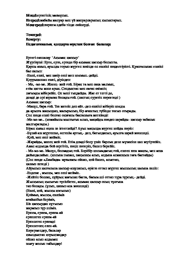 Тақырыбы:«Ақымақ қасқыр»қазақ халық ертегісін сахналау.