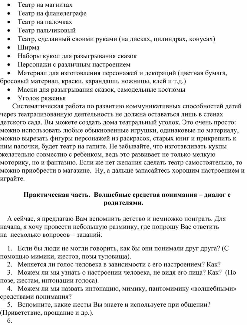 Практическая часть. Волшебные средства понимания – диалог с родителями.