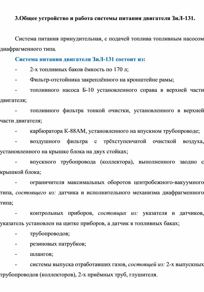 3.Общее устройство и работа системы питания двигателя ЗиЛ-131.