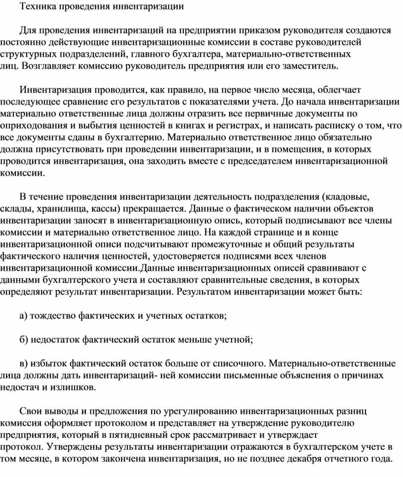 в) избыток фактический остаток больше от списочного. Материально-ответственные лица должны дать инвентаризаций- ней комиссии письменные объяснения о причинах недостач и излишков.