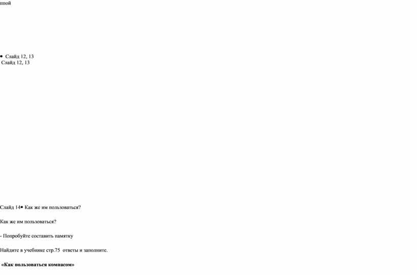 Как же им пользоваться? - Попробуйте составить памятку Найдите в учебнике стр.75 ответы и заполните. «Как пользоваться компасом»