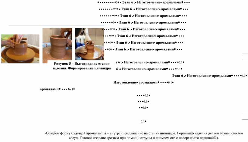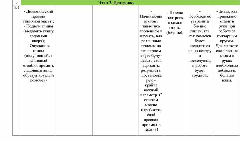 - Организация рабочего места; - Подготовить и хорошо промять глину перед работой за гончарным кругом. |