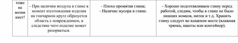 - Плохо промятая глина; - Наличие мусора в глине.