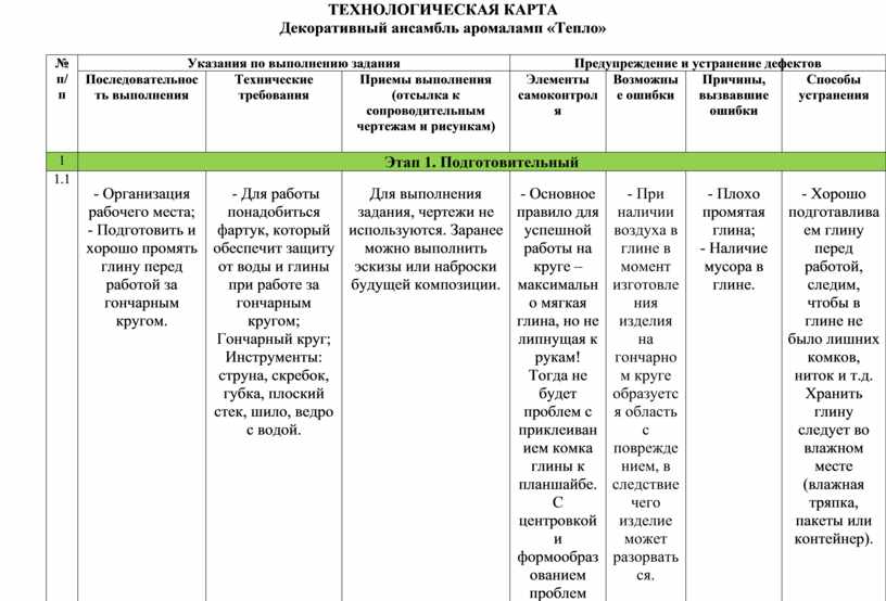 ТЕХНОЛОГИЧЕСКАЯ КАРТА