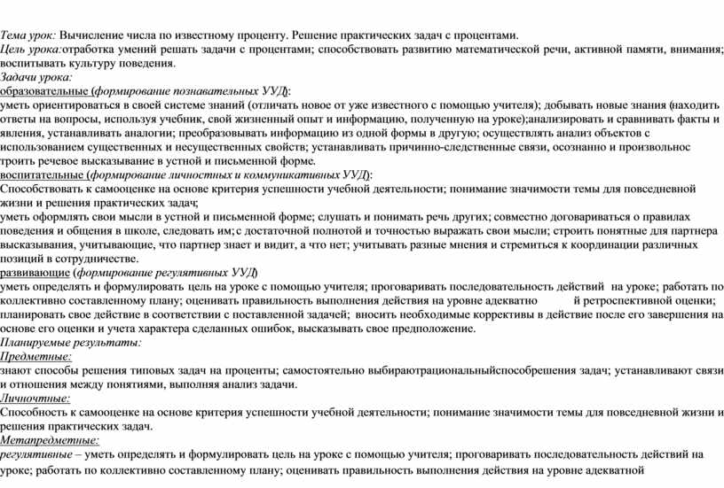 Тема урок: Вычисление числа по известному проценту. Решение практических задач с процентами.