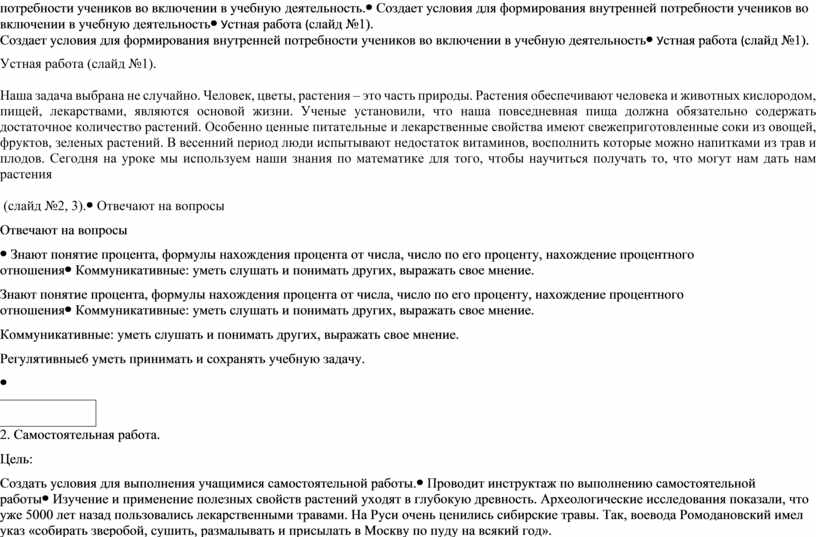 Устная работа (слайд №1). Наша задача выбрана не случайно. Человек, цветы, растения – это часть природы. Растения обеспечивают человека и животных кислородом, пищей, лекарствами, являются основой жизни. Ученые установили, что наша повседневная пища должна обязательно содержать достаточное количество растений. Особенно ценные питательные и лекарственные свойства имеют свежеприготовленные соки из овощей, фруктов, зеленых растений. В весенний период люди испытывают недостаток витаминов, восполнить которые можно напитками из трав и плодов. Сегодня на уроке мы используем наши знания по математике для того, чтобы научиться получать то, что могут нам дать нам растения (слайд №2, 3). |