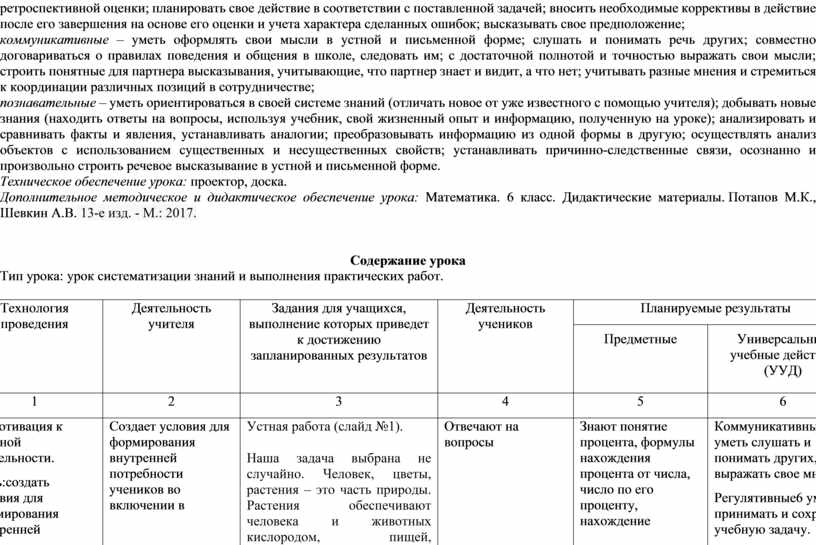 Дополнительное методическое и дидактическое обеспечение урока: Математика. 6 класс. Дидактические материалы. Потапов М.К., Шевкин А.В. 13-е изд. - М.: 2017.