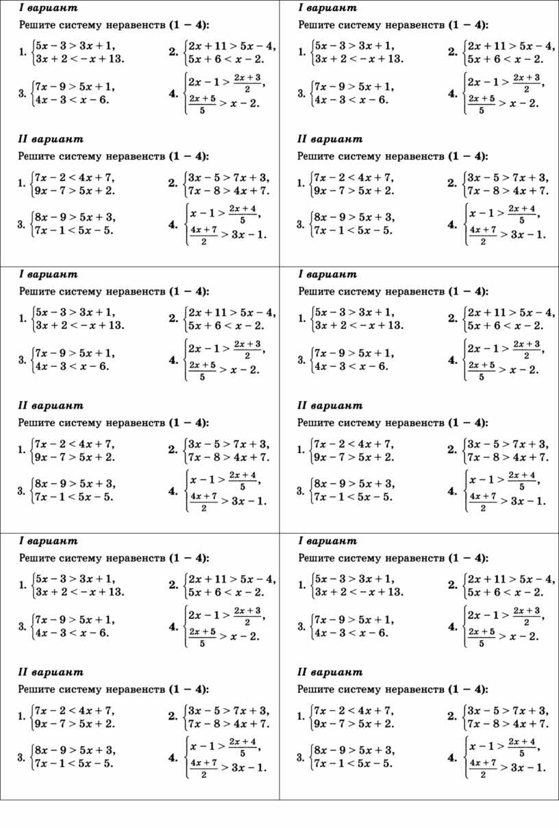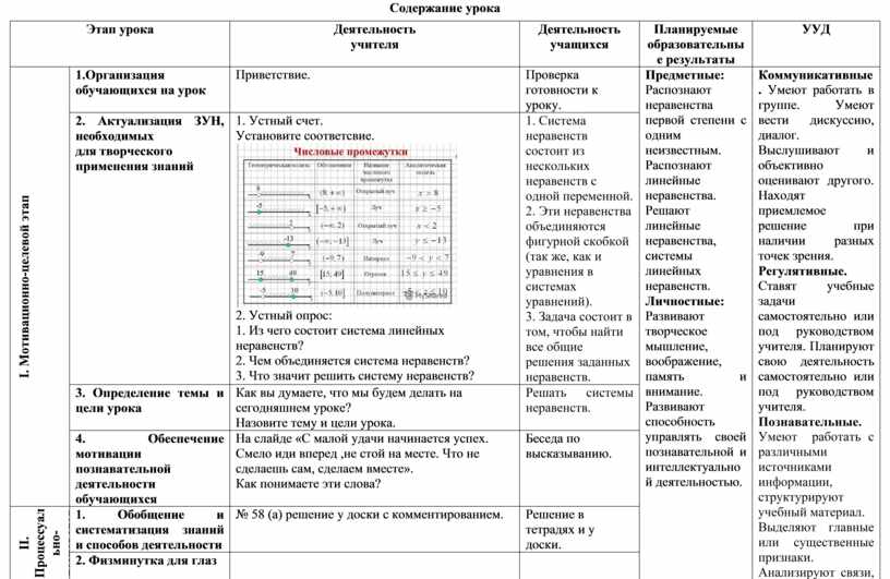 - в предметном направлении: Понятие системы линейных неравенств. Решение систем линейных неравенств. Решение систем неравенств при помощи графиков