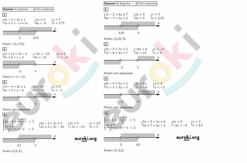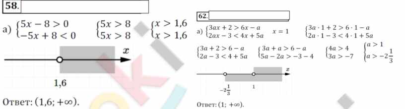 1. Система неравенств состоит из нескольких неравенств с одной переменной. 2. Эти неравенства объединяются фигурной скобкой (так же, как и уравнения в системах уравнений). 3. Задача состоит в том, чтобы найти все общие решения заданных неравенств. |