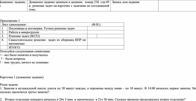 Домашнее задание запишем в дневник: номер 238 стр.49 и решение задач на карточке с задачами по сегодняшней теме. |