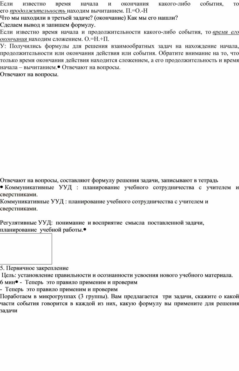 по теме: «Решение задач на определение начала, продолжительности и конца события.»