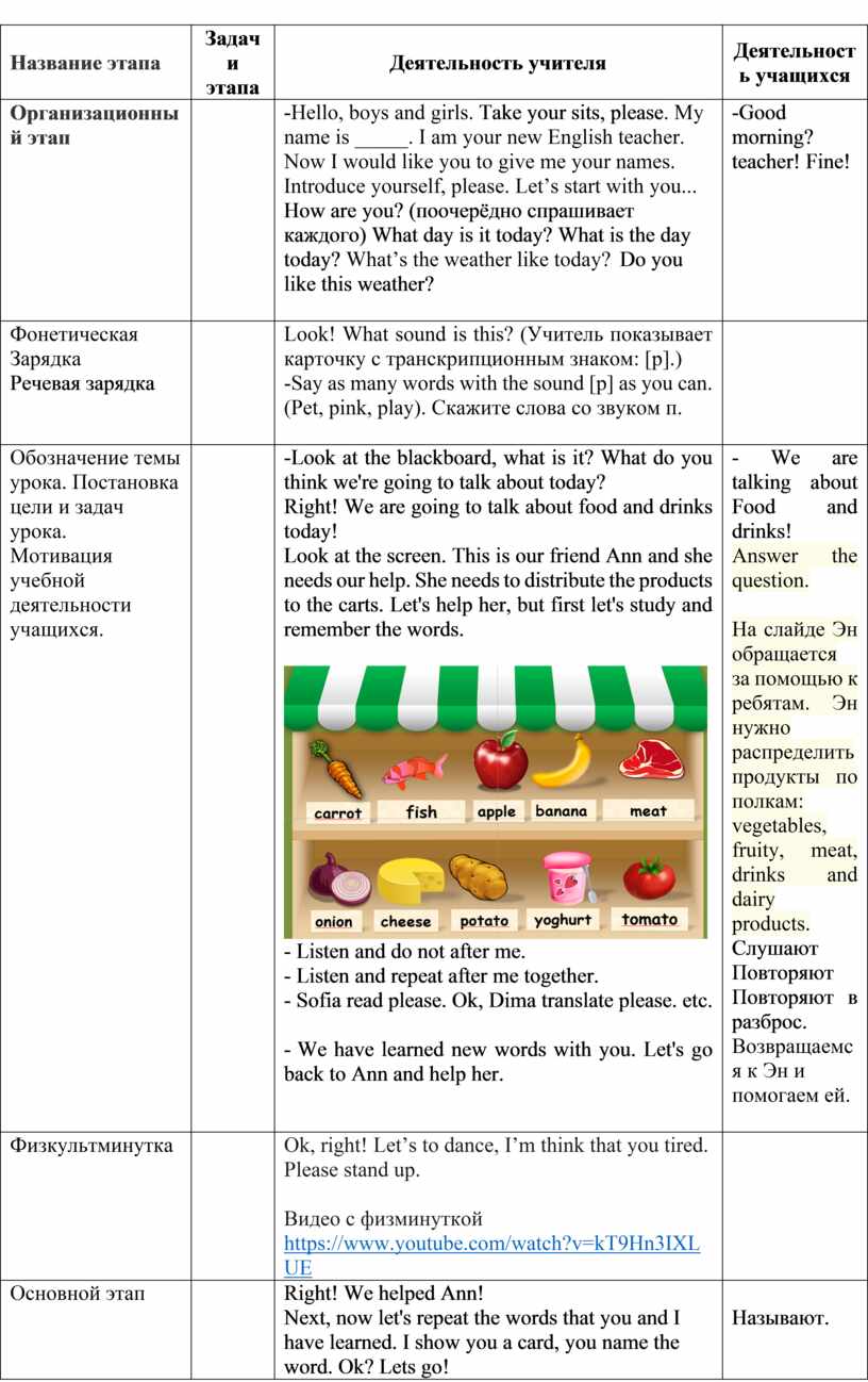 Right! We helped Ann! Next, now let's repeat the words that you and I have learned. I show you a card, you name the word. Ok? Lets go! What is it? (учитель держит карточку с изображением овоща/фрукта и тд.)