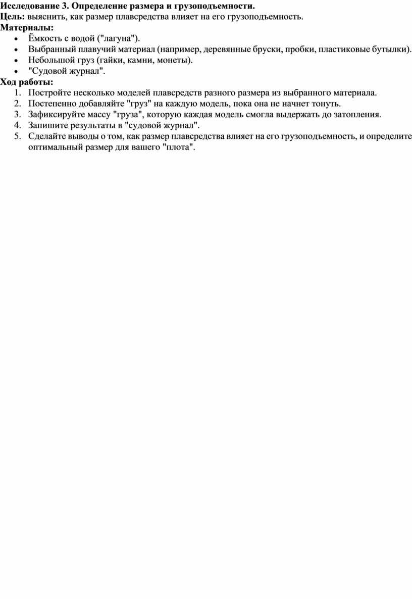 5. Сделайте выводы о том, как размер плавсредства влияет на его грузоподъемность, и определите оптимальный размер для вашего "плота".