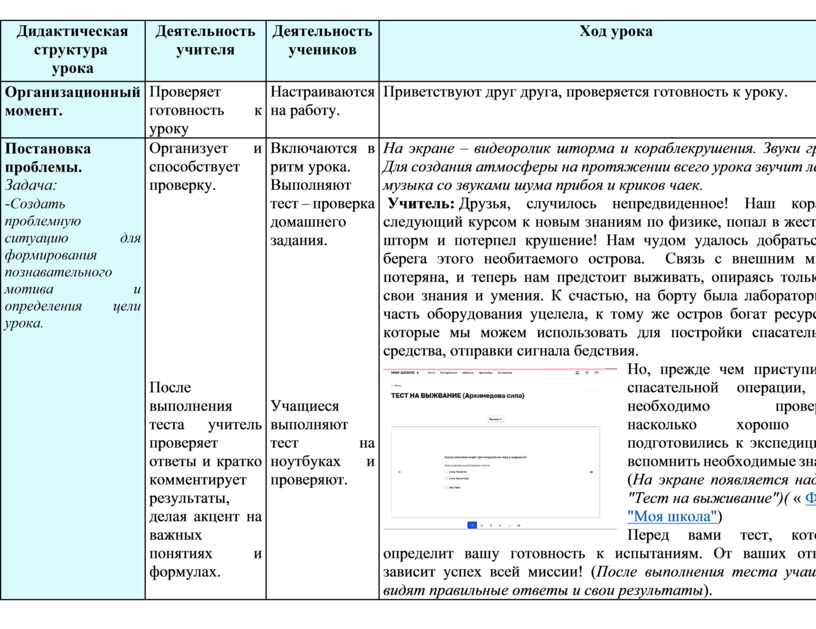 На экране – видеоролик шторма и кораблекрушения. Звуки грозы. Для создания атмосферы на протяжении всего урока звучит легкая музыка со звуками шума прибоя и криков чаек. Учитель: Друзья, случилось непредвиденное! Наш корабль, следующий курсом к новым знаниям по физике, попал в жестокий шторм и потерпел крушение! Нам чудом удалось добраться до берега этого необитаемого острова. Связь с внешним миром потеряна, и теперь нам предстоит выживать, опираясь только на свои знания и умения. К счастью, на борту была лаборатория, и часть оборудования уцелела, к тому же остров богат ресурсами, которые мы можем использовать для постройки спасательного средства, отправки сигнала бедствия.