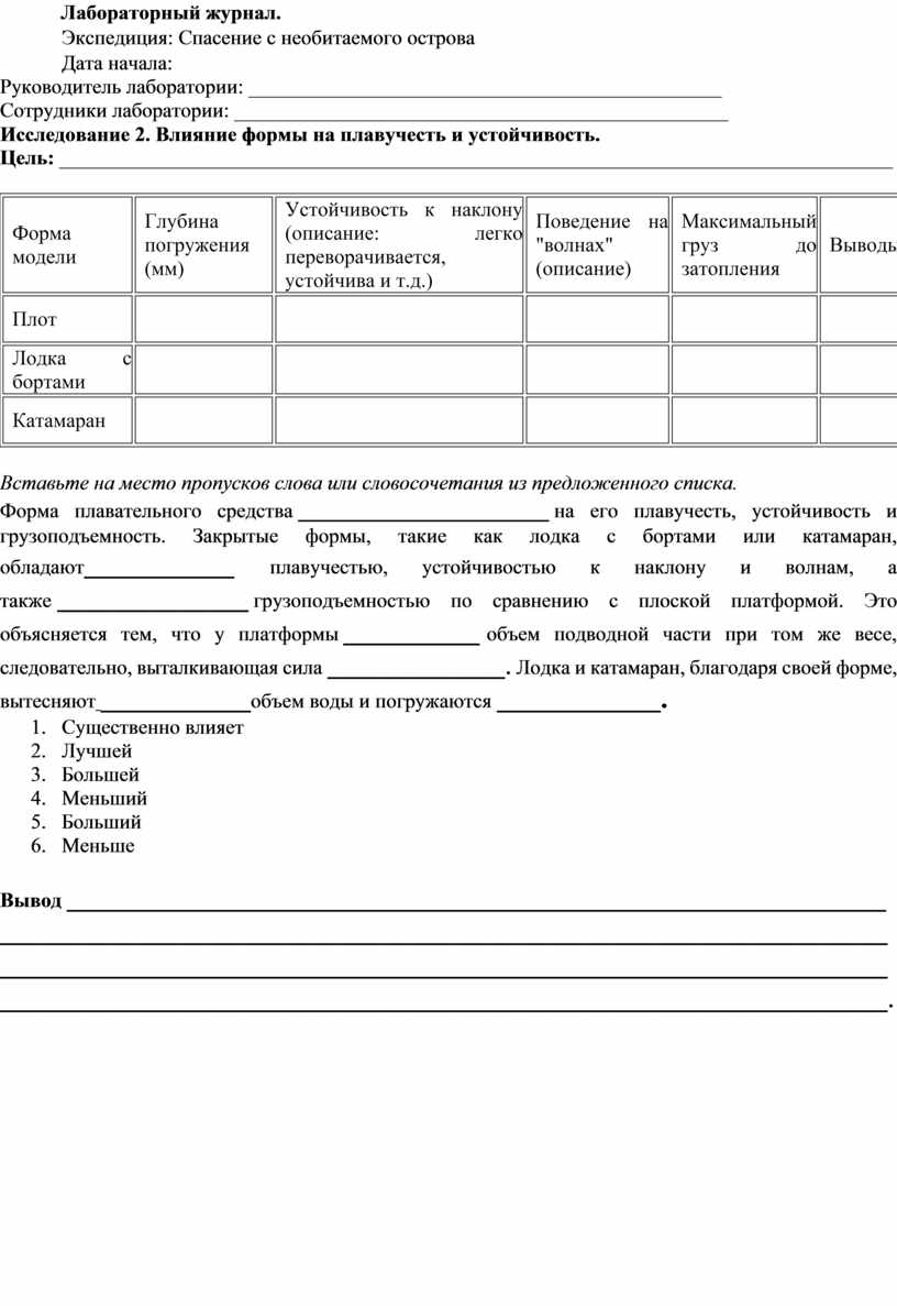 7. Запишите все наблюдения и результаты измерений в "судовой журнал". Сделайте выводы о том, какая форма обеспечивает наилучшую плавучесть и устойчивость.