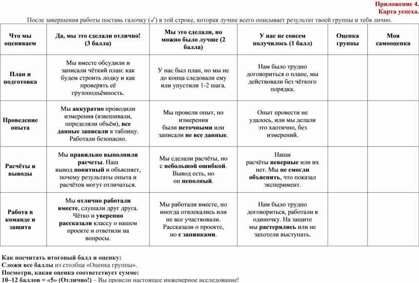o 10–12 баллов = «5» (Отлично!) – Вы провели настоящее инженерное исследование!