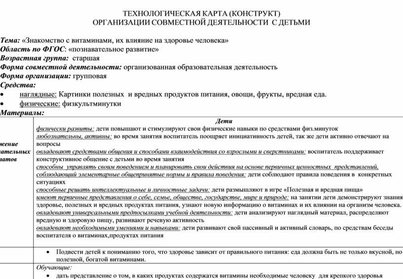ТЕХНОЛОГИЧЕСКАЯ КАРТА (КОНСТРУКТ)