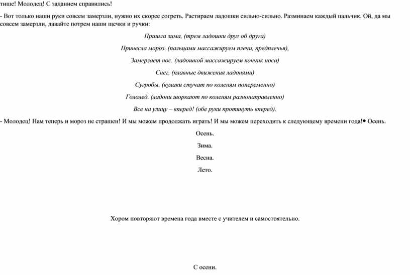 Хором повторяют времена года вместе с учителем и самостоятельно.