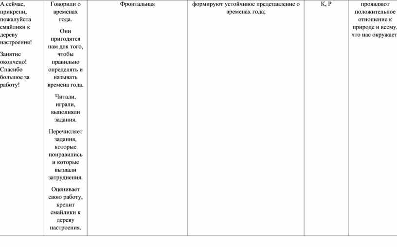Говорили о временах года. Они пригодятся нам для того, чтобы правильно определять и называть времена года. Читали, играли, выполняли задания. Перечисляет задания, которые понравились и которые вызвали затруднения. Оценивает свою работу, крепит смайлики к дереву настроения. |