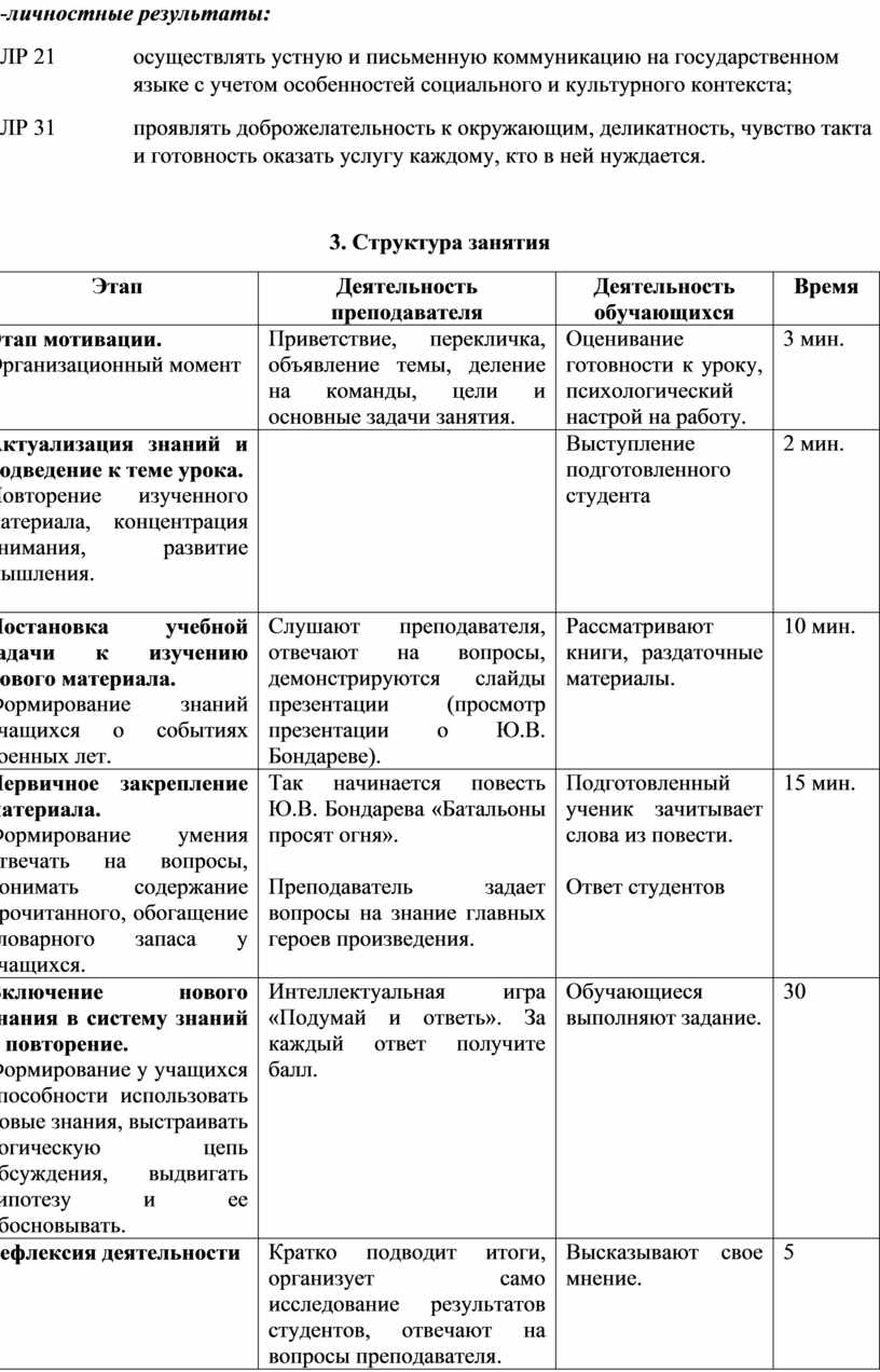 Тема занятия: Драматургия великой отечественной войны. Лейтенантская проза по произведению Ю.В. Бондарева «Батальоны просят огня»