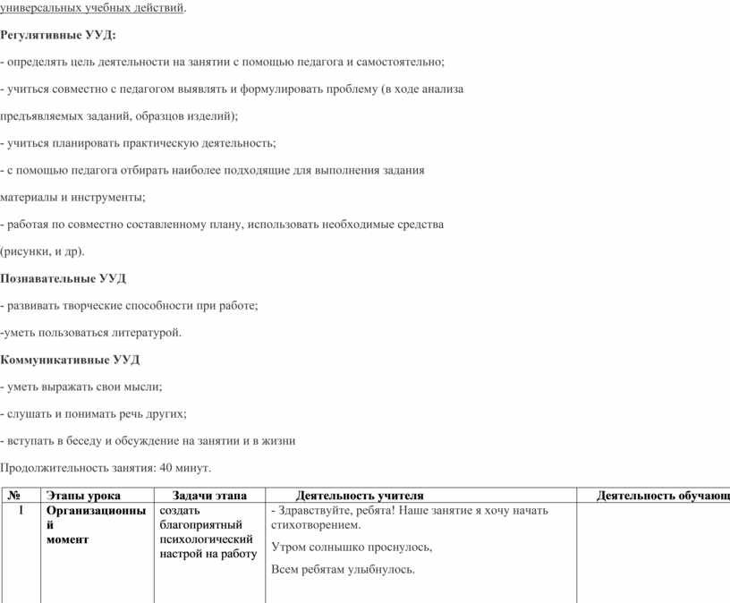 - определять цель деятельности на занятии с помощью педагога и самостоятельно;