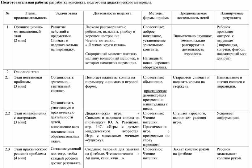 Подготовительная работа: разработка конспекта, подготовка дидактического материала.