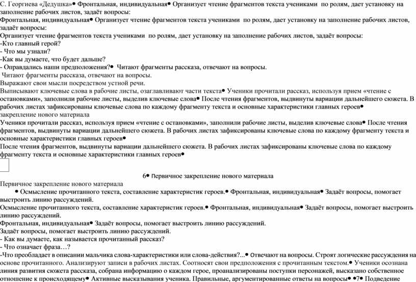 На основе приема «чтение с остановками» знакомство с произведением С. Георгиева «Дедушка» |