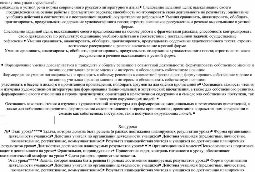 Ученики осознана линия развития сюжета рассказа, собрана информацию о каждом герое, проанализированы поступки персонажей, высказано собственное отношение к происходящему |