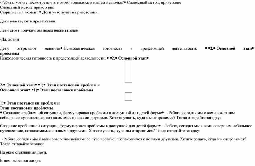 Создание проблемной ситуации, формулировка проблемы в доступной для детей форме |