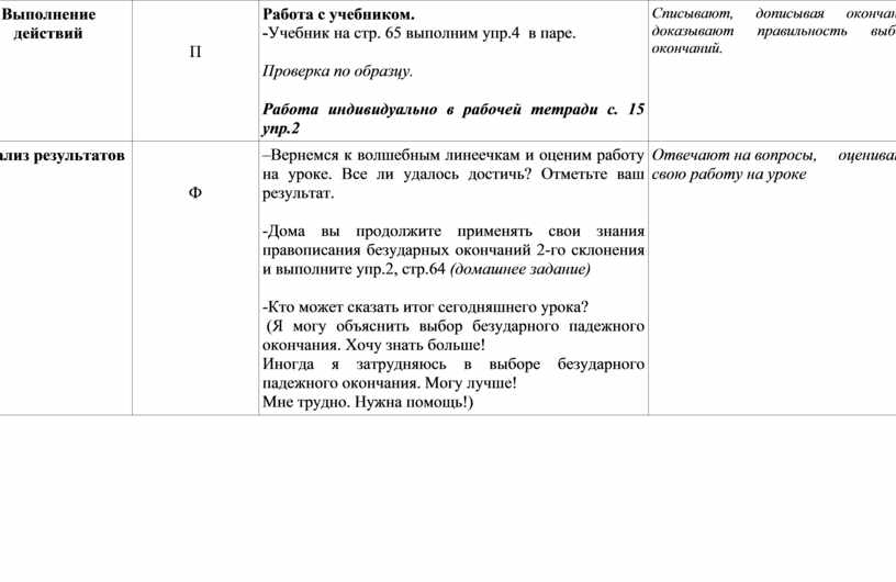 -Кто может сказать итог сегодняшнего урока? (Я могу объяснить выбор безударного падежного окончания. Хочу знать больше! Иногда я затрудняюсь в выборе безударного падежного окончания. Могу лучше! Мне трудно. Нужна помощь!) |