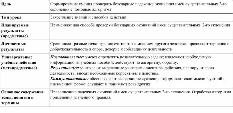 Формирование умения проверять безударные падежные окончания имён существительных 2-го склонения с помощью алгоритма |