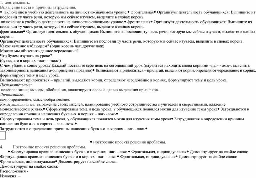 Выписывают: приложиться – прилагай, выделяют корни, определяют чередование в корнях, формулируют тему и цель урока. Познавательные: целеполагание; выводы, обобщения, анализируют слова с целью выделения признаков. Личностные: самоопределение, смыслообразование. Коммуникативные: выражение своих мыслей, планирование учебного сотрудничества с учителем и сверстниками, владение монологической речью. |