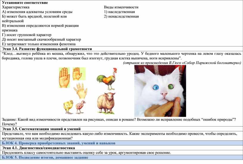Задание: Какой вид изменчивости представлен на рисунках, описан в романе? Возможно ли исправление подобных “ошибок природы”? Почему? |