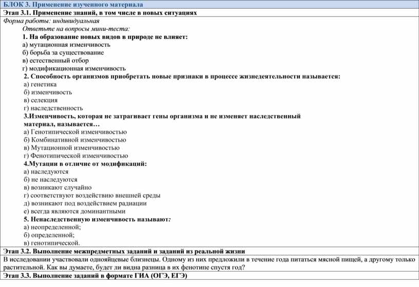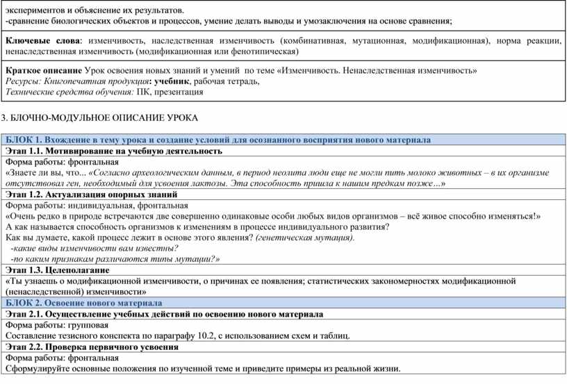 3. БЛОЧНО-МОДУЛЬНОЕ ОПИСАНИЕ УРОКА